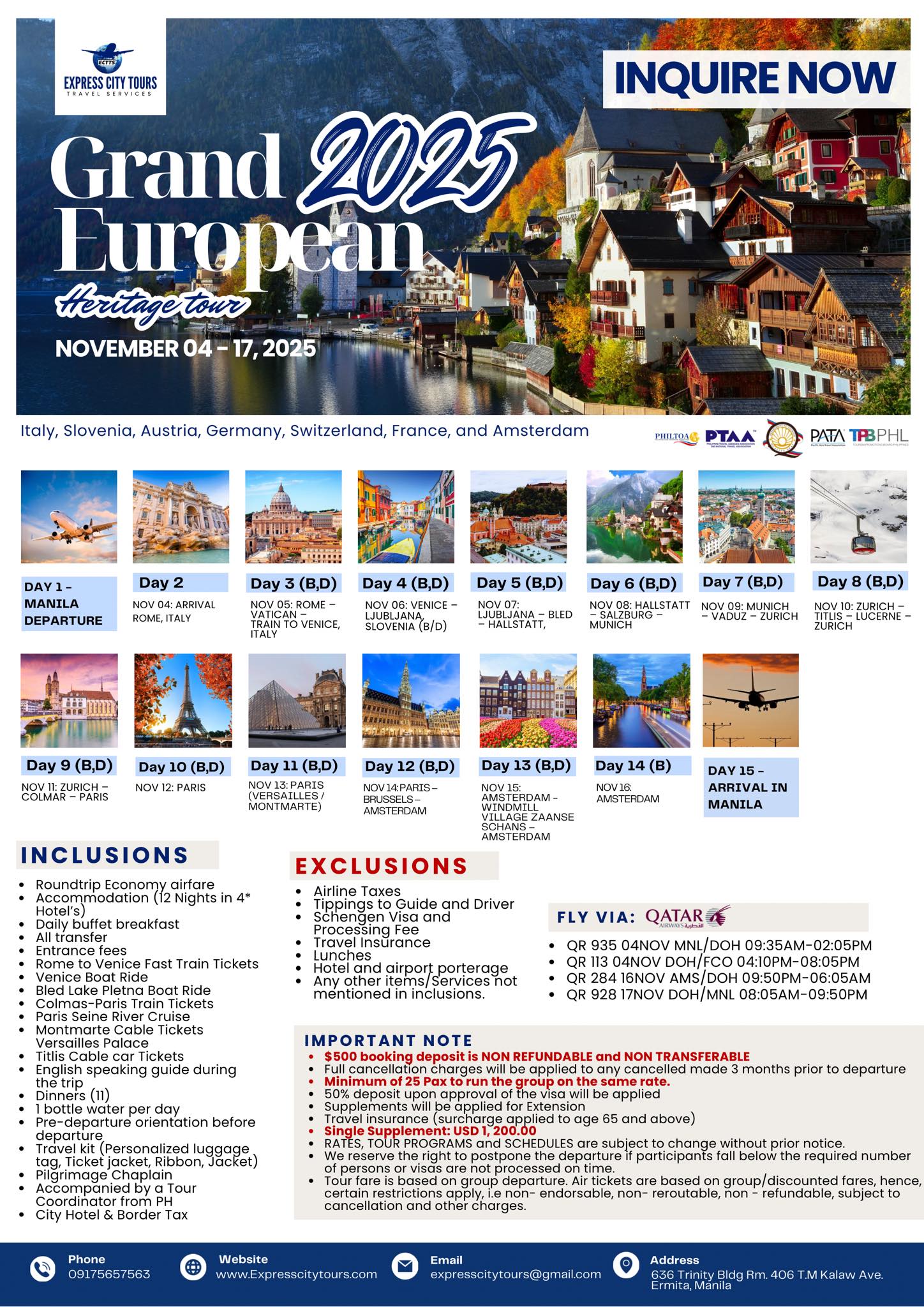 Get ready for 14 unforgettable days across Italy, Slovenia, Austria, Germany, Switzerland, France, and Amsterdam ![]()